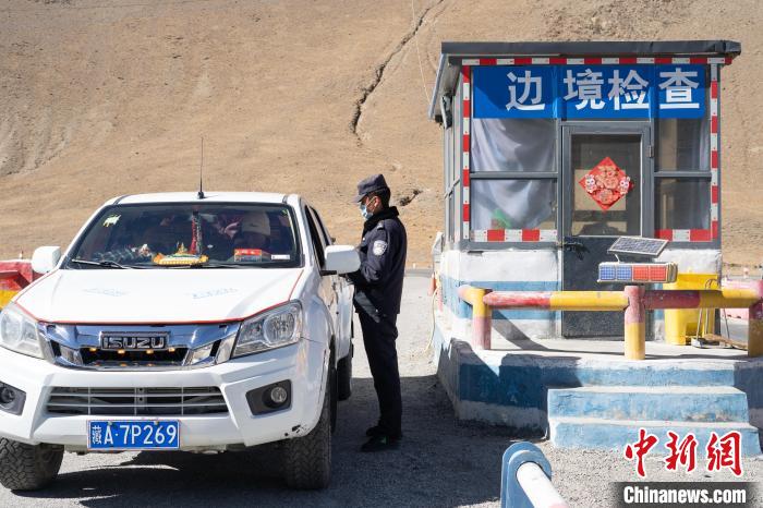 圖為(wei) 移民管理警察檢查過往車輛證件。 貢嘎來鬆 攝
