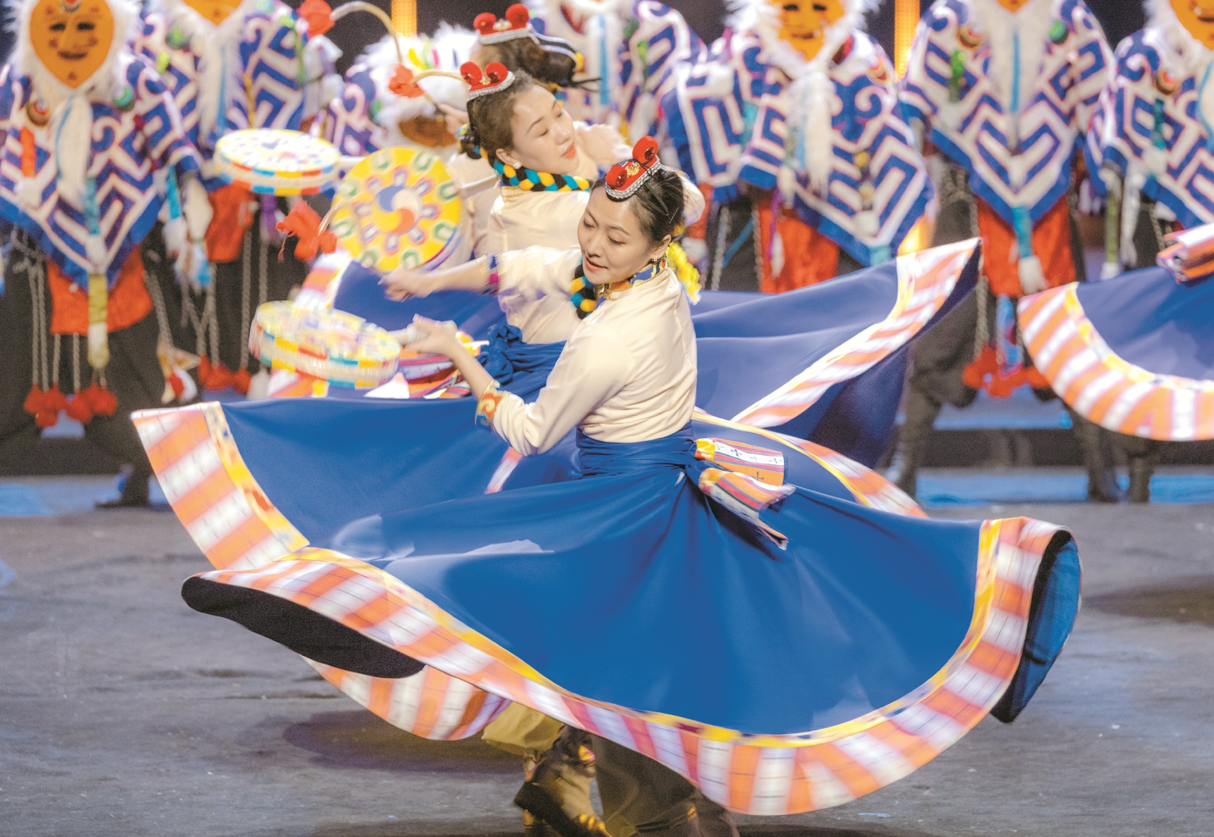 演出在開場歌舞《新年 紮西德勒》中拉開帷幕;《紮西熱巴》《豐(feng) 收的喜悅》等文藝交往交流交融成果的演出,展現了中華優(you) 秀傳(chuan) 統文化的博大精深和與(yu) 時俱進;“甜野男孩”丁真帶來的《天空下的溫暖》治愈人心,烏(wu) 蘭(lan) 圖雅傾(qing) 情呈現《拉薩我的家》,次仁桑珠的《歡樂(le) 幸福年》喜慶吉祥,雜技《劈風斬浪》剛柔並濟,驚豔眾(zhong) 人;《弘》《羌塘魂》《熱堆諧欽》《熱巴多吉》等節目接連登場,讓觀眾(zhong) 享受到極富西藏特色歌舞的同時,也感受到西藏人民的深情厚誼。現場更有在江蘇就業(ye) 的拉薩籍高校畢業(ye) 生和南通西藏民族中學的孩子們(men) 現身,在千裏之外聽到鄉(xiang) 音。17個(ge) 節目全麵展現了新時代拉薩新氣象、新麵貌,舞美變幻、光效爛漫。現場掌聲不斷,氣氛熱烈祥和。