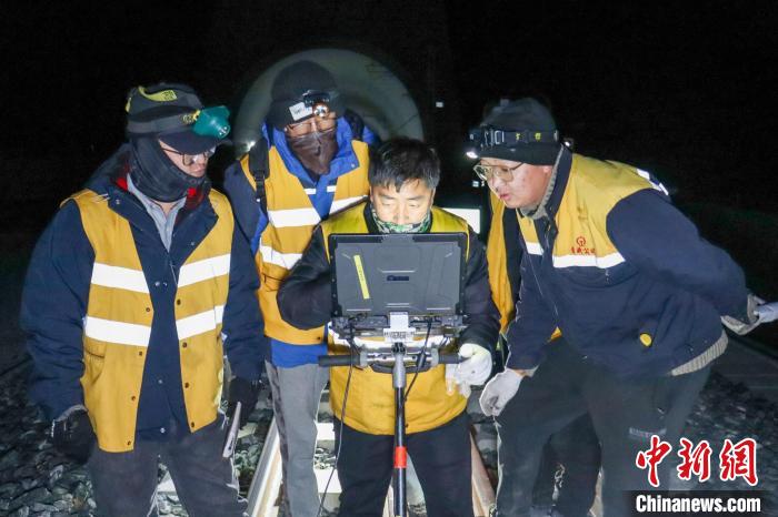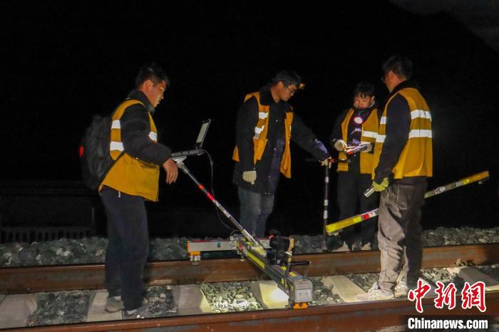 圖為(wei) 2月9日晚,工作人員在西藏拉林鐵路線上進行設備檢查作業(ye) 。 馬生明 攝