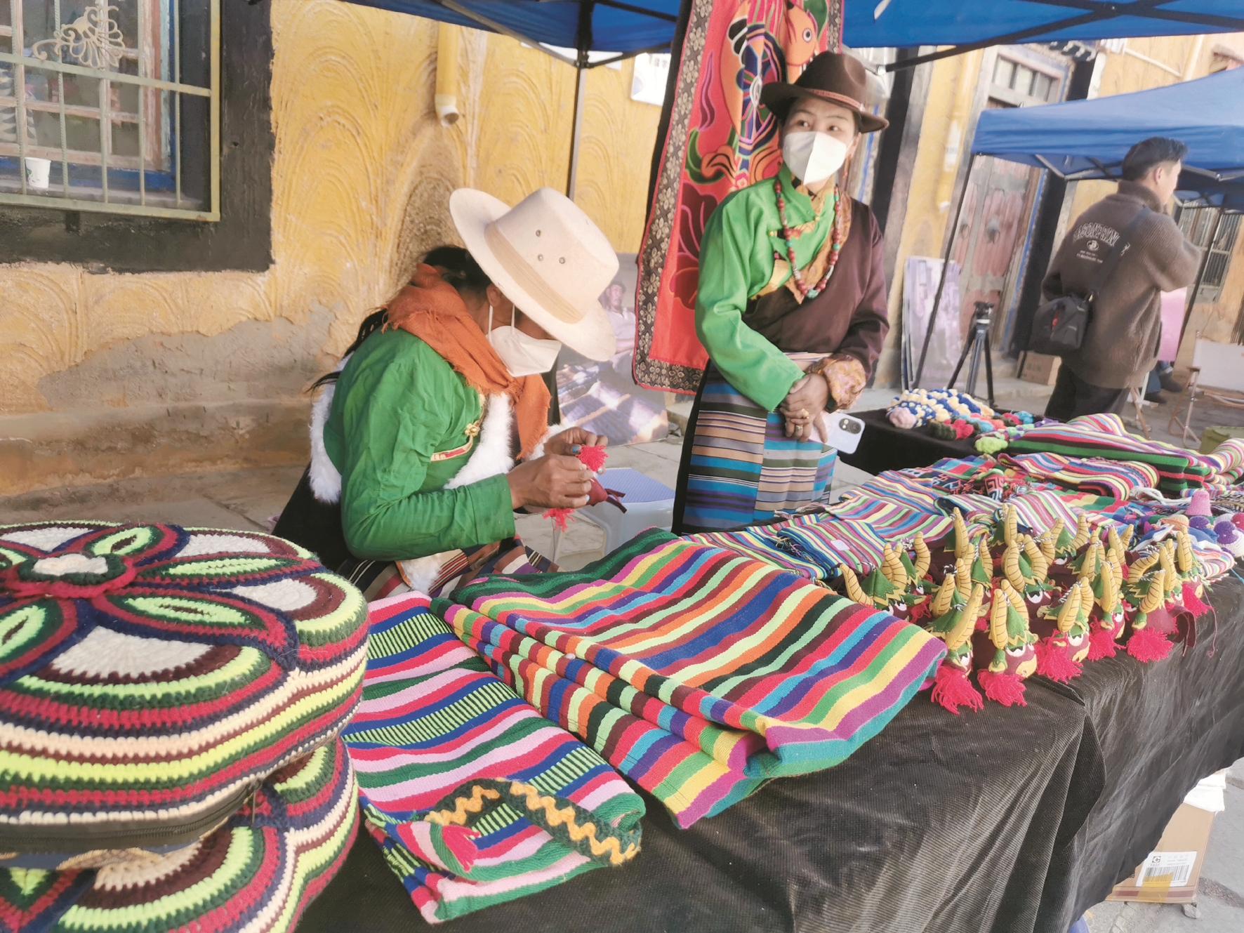 當雄縣榮馬鄉(xiang) 手工合作社負責人石確說:“今天把我們(men) 鄉(xiang) 手工合作社的民族手工藝品拿過來賣,我心裏特別高興(xing) ,我也有信心賣得更多,增加更多的收入。”