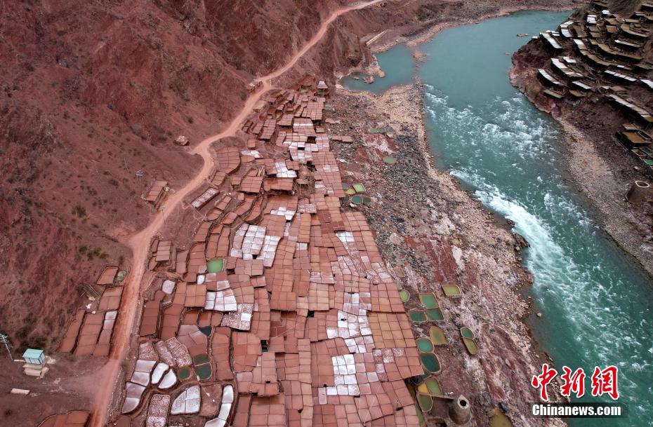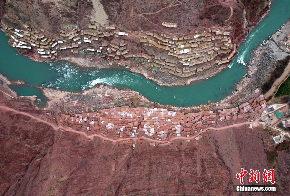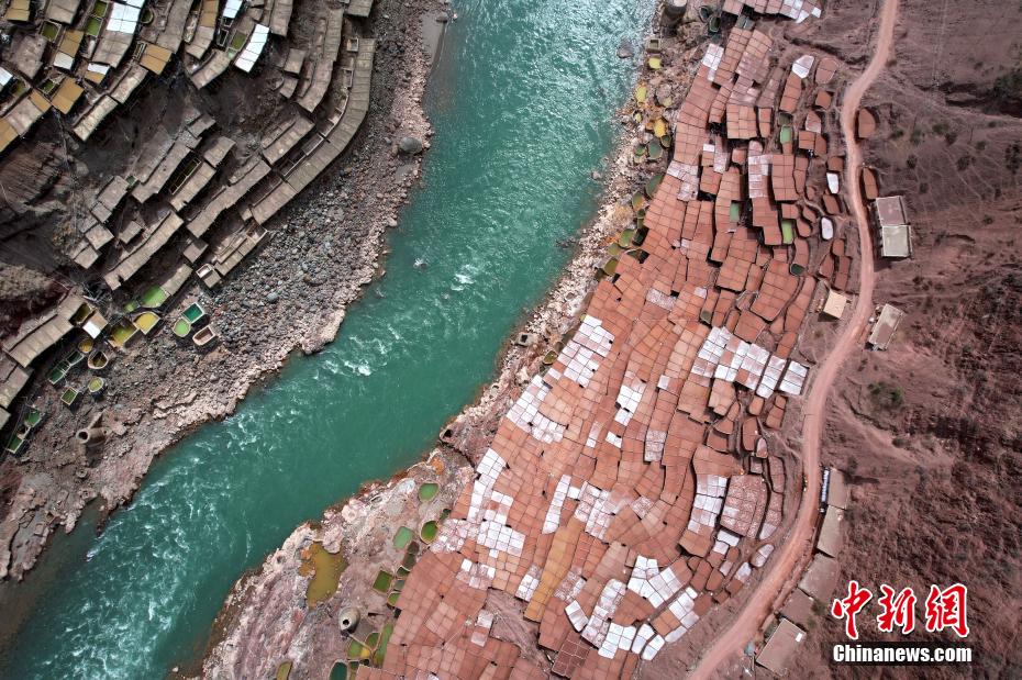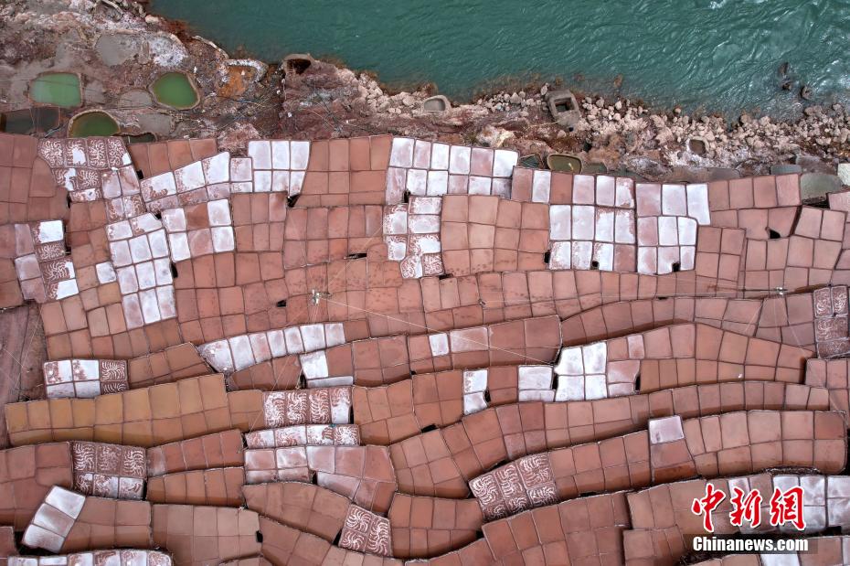在西藏昌都芒康縣納西民族鄉(xiang) 瀾滄江兩(liang) 側(ce) ,有一處古老的、大大小小數千塊鹽田。史料記載,當地曬鹽曆史距今已有1000多年。木柱搭建的鹽田,高低錯落,依河穀山勢,在臨(lin) 江兩(liang) 岸蔓延。當地民眾(zhong) 從(cong) 江畔的鹽井、鹽池中抽出鹵水,引入鹽田,經過陽光與(yu) 風的傑作,結晶成鹽。進入鹽田,房內(nei) 頂部到處懸掛鍾乳狀晶鹽,仿若“水晶宮”的世界。圖為(wei) 2月13日,西藏昌都芒康千年古鹽田。(無人機照片)