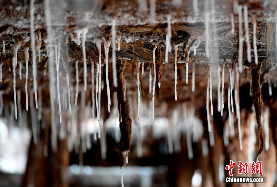 2月13日,古鹽田房內(nei) 頂部到處懸掛鍾乳狀晶鹽,仿若“水晶宮”的世界。