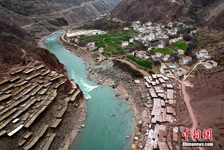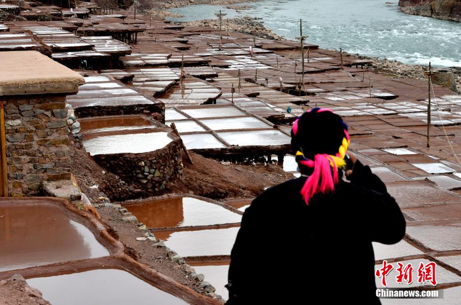 2月13日,西藏昌都芒康縣納西民族鄉(xiang) 加達村村民俯瞰古鹽田。