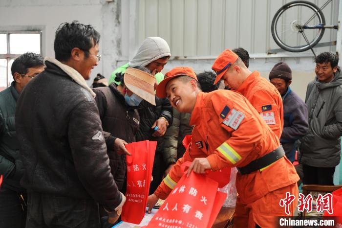 林芝市森林消防支隊巴宜區中隊消防救援人員與(yu) 地方民眾(zhong) 合影留念。西繞拉翁 攝