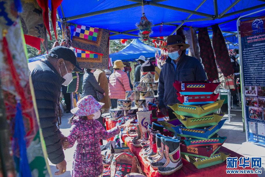 2月14日,群眾(zhong) 在“卓番林”藏族手工藝品牌店展位上挑選特色手工藝品。新華網 旦增努布 攝