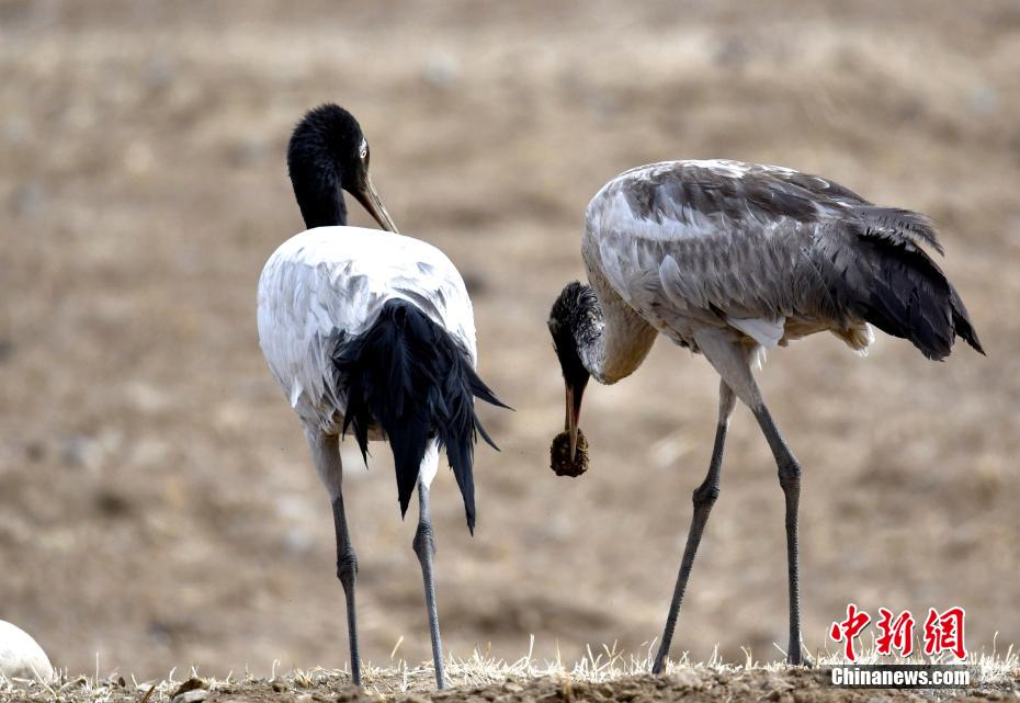 2月19日,西藏拉薩堆龍德慶區楚布溝內(nei) 的一處農(nong) 田裏,一群黑頸鶴正在覓食。時下,在雅魯藏布江中遊河穀一帶的農(nong) 田和水域,黑頸鶴等眾(zhong) 多候鳥或覓食或棲息,成為(wei) 初春一抹亮麗(li) 色彩。黑頸鶴是國家一級保護動物,也是唯一生活、繁殖在高原的鶴類。在河穀地帶越冬的黑頸鶴一直要待到三四月份才會(hui) 北上到藏北,開啟新的生活。