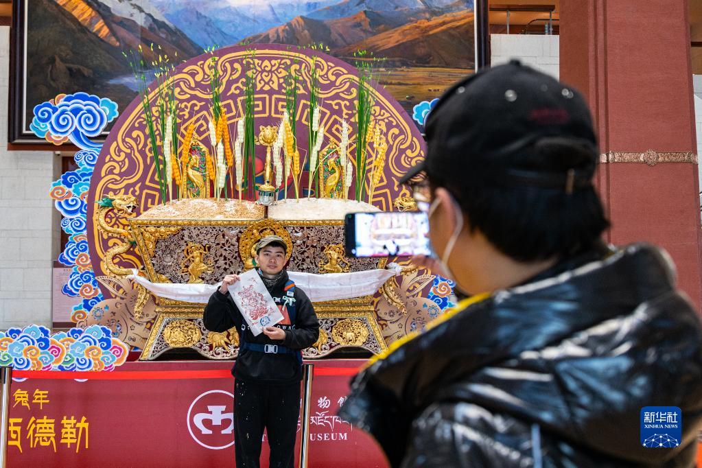 藏曆新年期間,西藏博物館依據當地特色年俗,開展豐(feng) 富多彩的活動,吸引遊客和市民前來體(ti) 驗。