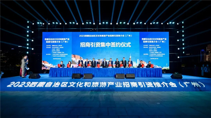 西藏招商引資工作人員與(yu) 廣東(dong) 省文旅企業(ye) 進行了洽談對接,共簽約文化旅遊類項目11個(ge) ,總投資68.43億(yi) 元。