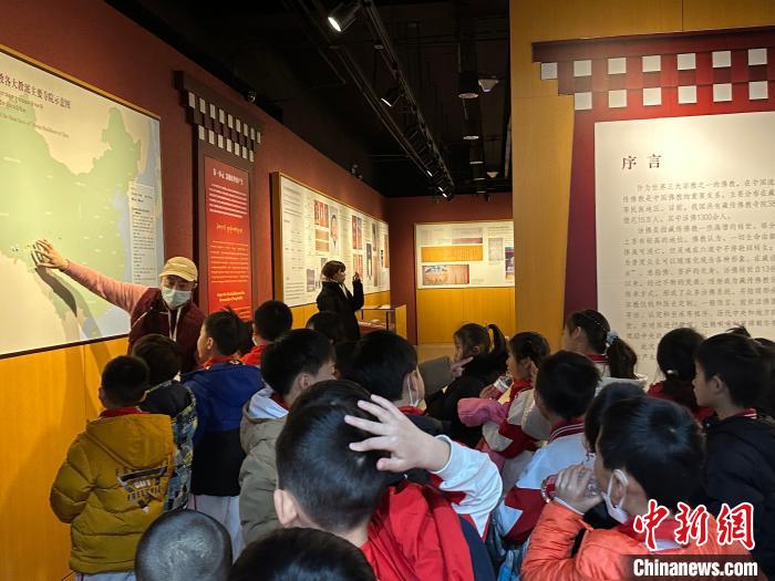 圖為(wei) 活動當天西藏文化博物館的誌願者們(men) 帶領小朋友參觀館內(nei) 展覽。李晗雪 攝