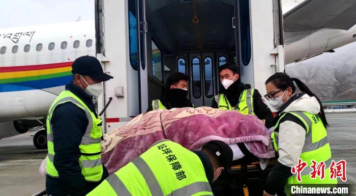圖為(wei) 拉薩貢嘎國際機場保障部門工作人員為(wei) 特殊旅客提供服務。民航西藏自治區管理局供圖