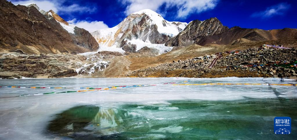 西藏拉薩市尼木縣境內(nei) 的瓊穆崗嘎峰海拔7048米,是念青唐古拉山脈南端最後一座高峰。瓊穆崗嘎冰川氣勢恢宏,冰臼湖群點綴其間,湖水結冰後呈現出夢幻般的色彩,恍若仙境。新華社記者 沈虹冰 攝