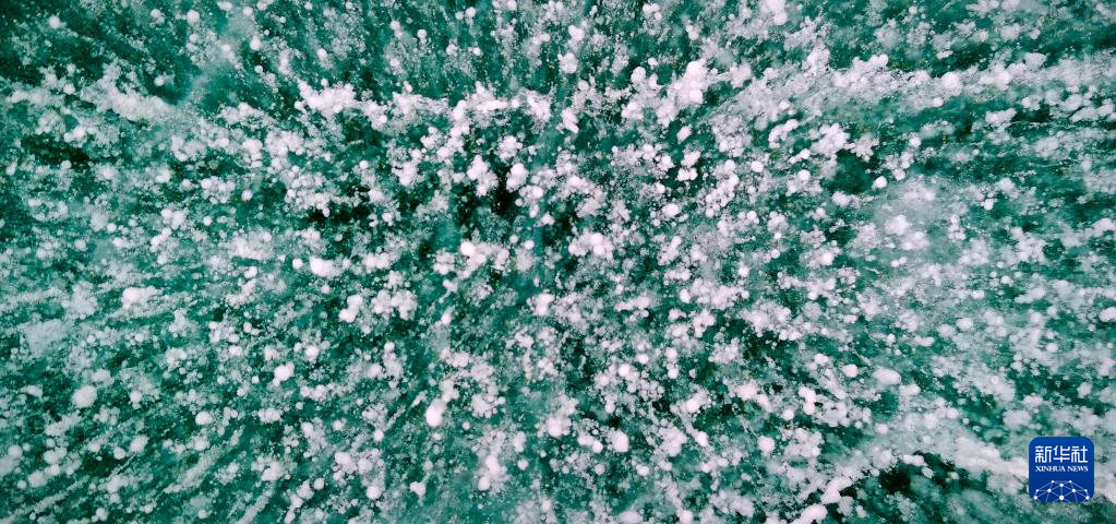 這是瓊穆崗嘎冰川冰湖湖麵的“氣泡冰”(手機照片,2月20日攝)。新華社記者 沈虹冰 攝