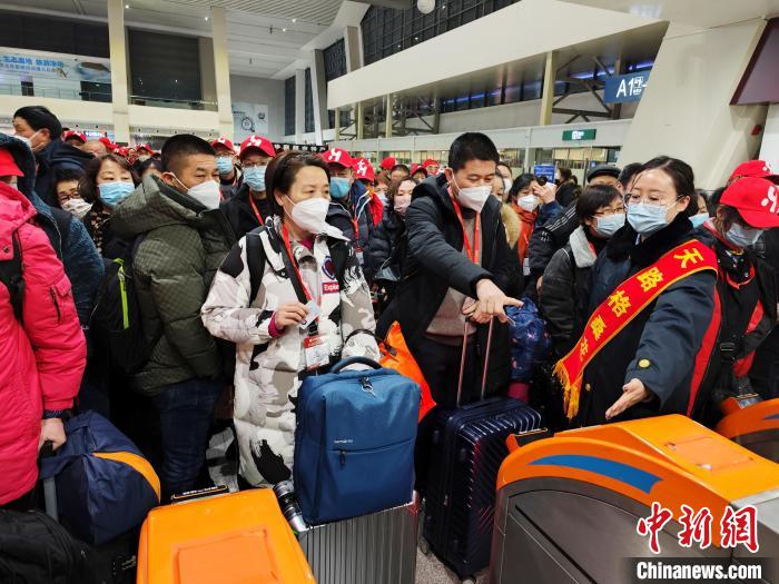 圖為(wei) 乘坐首趟進藏旅遊專(zhuan) 列的旅客進站。楊紅健 攝