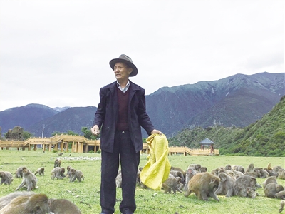 早先,多布傑的工作沒有得到家人的支持,但他並不在意,在這片山林裏一守就是20多年。每當提起藏獼猴,這位古稀老人的臉上總是露出燦爛的笑容。隨著旅遊開發的推進,仲莎鄉(xiang) 在林則村的山穀地帶設立生態文化旅遊景區,多布傑也成為(wei) 景區藏獼猴飼養(yang) 員的不二人選。