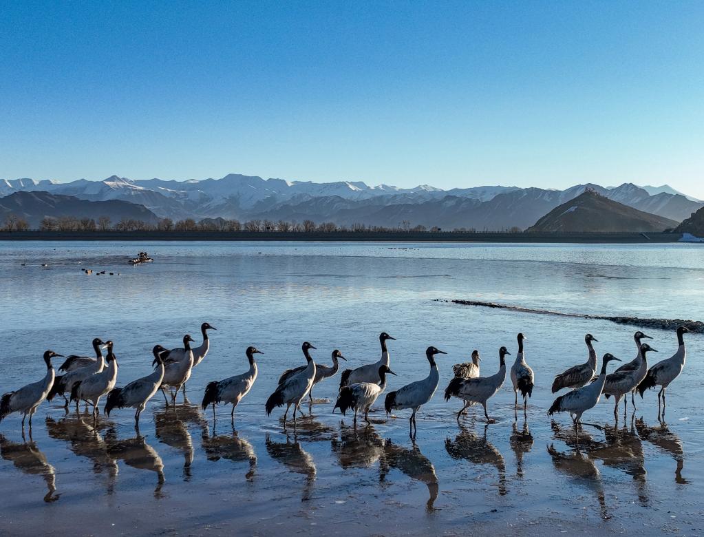 黑頸鶴是國家一級保護動物,主要棲息在海拔2500米至5000米的高原、草甸、沼澤地帶。拉薩北部的林周縣平均海拔約4200米,是黑頸鶴的主要越冬地之一。