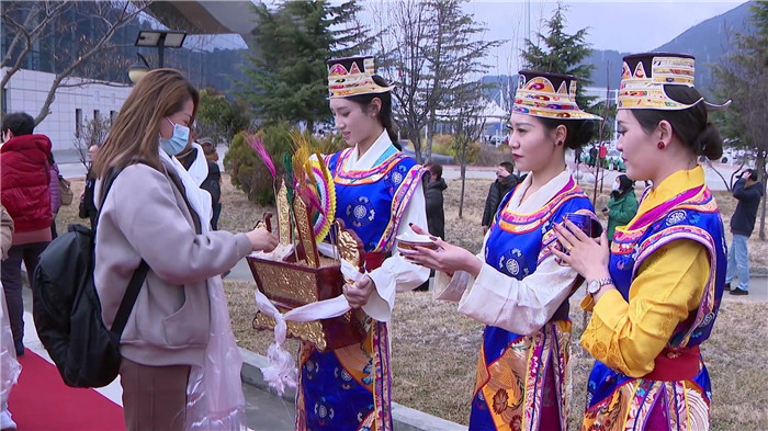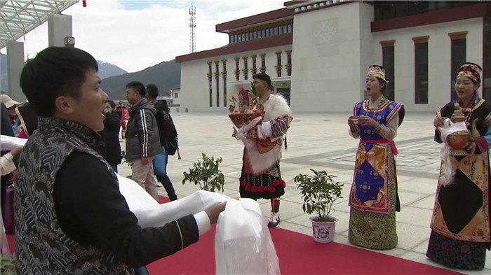 隨後,身著盛裝的藏族姑娘和小夥(huo) 們(men) 為(wei) 遠道而來的廣東(dong) 遊客們(men) 獻上優(you) 美的歌舞表演。