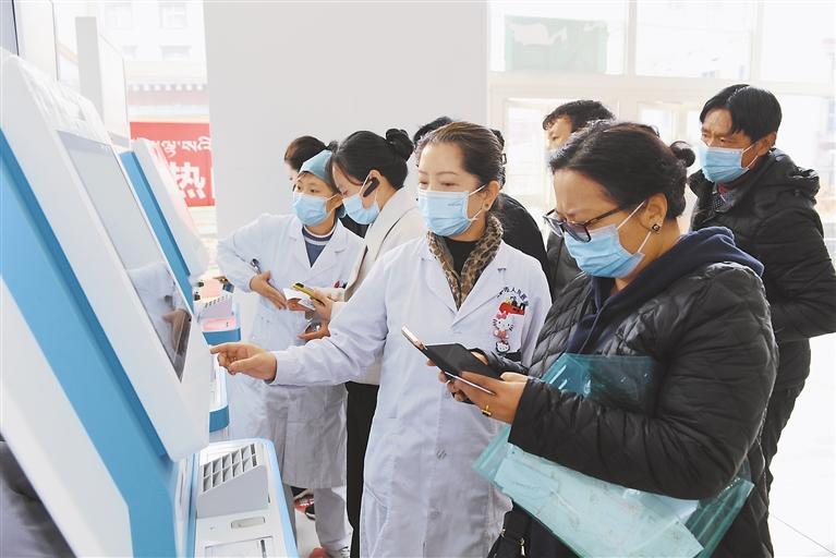 拉薩市人民醫院女醫務人員幫助患者家屬辦理業(ye) 務。丹增群培 攝