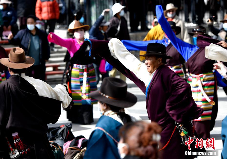3月9日,西藏拉薩,民眾(zhong) 在宗角祿康公園跳鍋莊舞。李林 攝