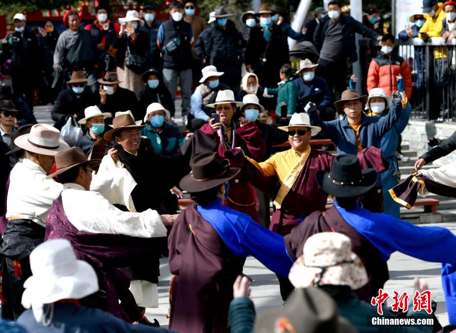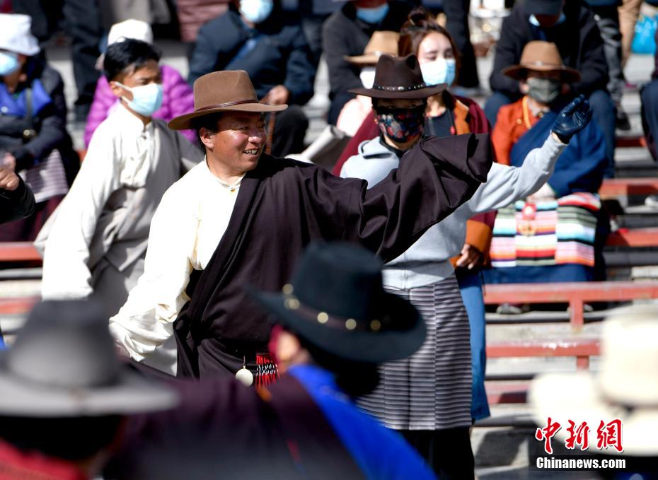 3月9日,西藏拉薩,民眾(zhong) 在宗角祿康公園表演朗瑪堆諧。李林 攝