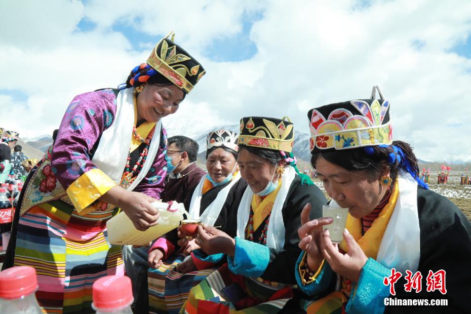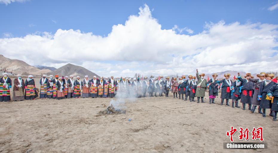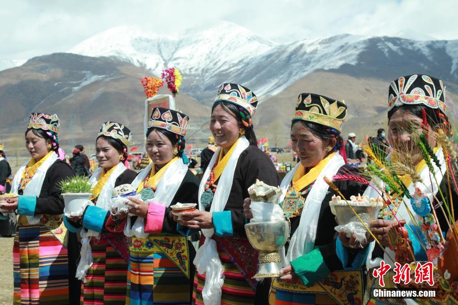 圖為(wei) 拉薩市林周縣朱加村,村民穿著節日盛裝舉(ju) 行傳(chuan) 統春耕儀(yi) 式。林周融媒 供圖