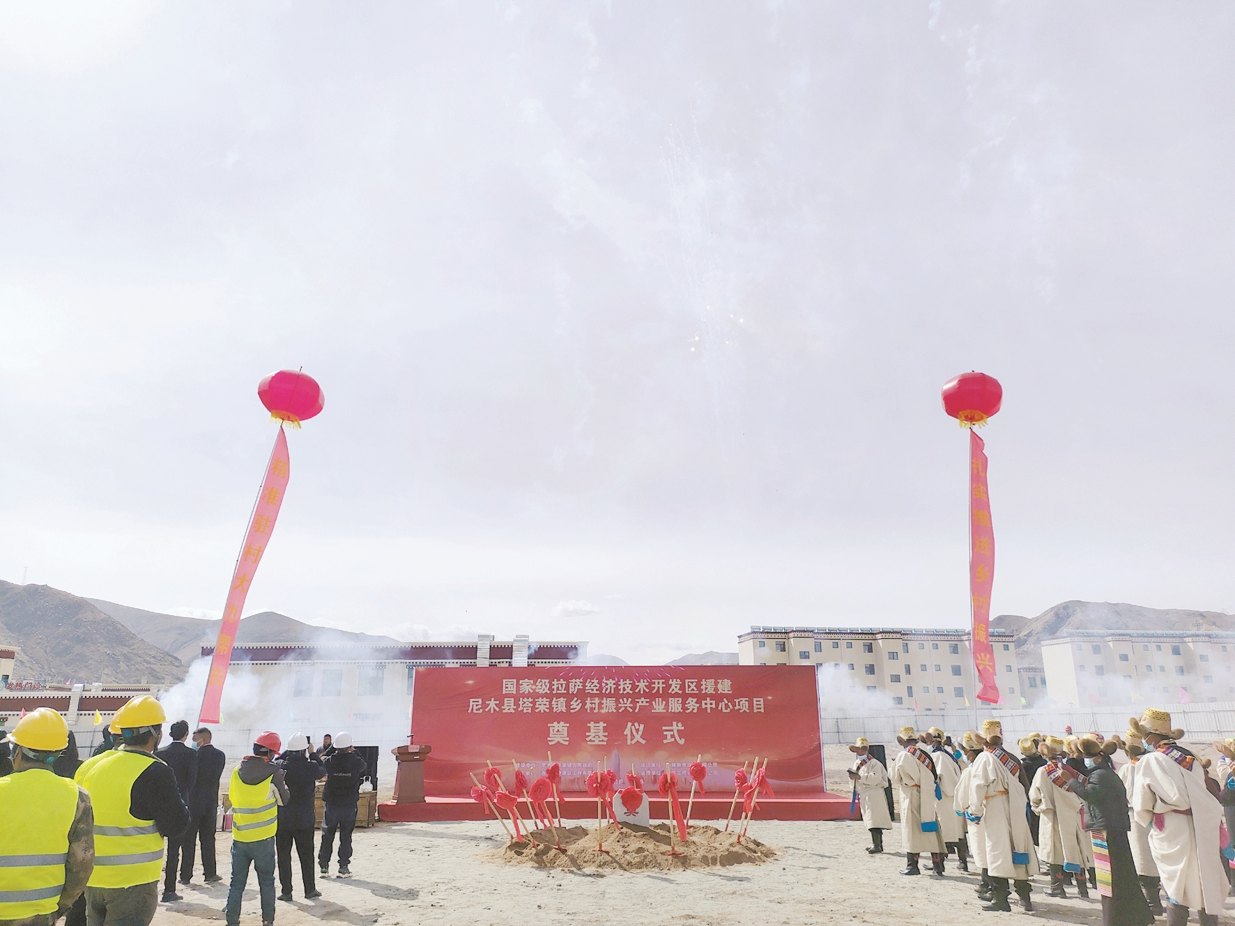 3月20日,拉薩經開區援建尼木縣塔榮鎮產(chan) 業(ye) 服務中心項目奠基儀(yi) 式舉(ju) 行。圖為(wei) 奠基儀(yi) 式現場。 拉薩融媒記者 李從(cong) 芳攝