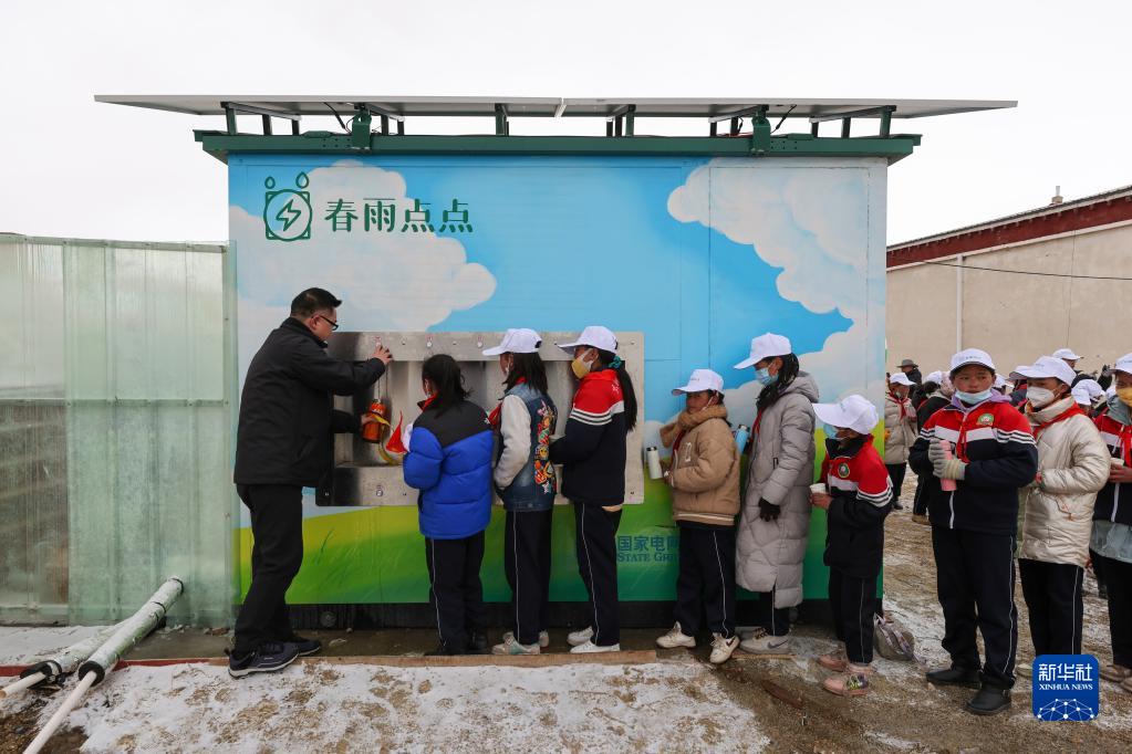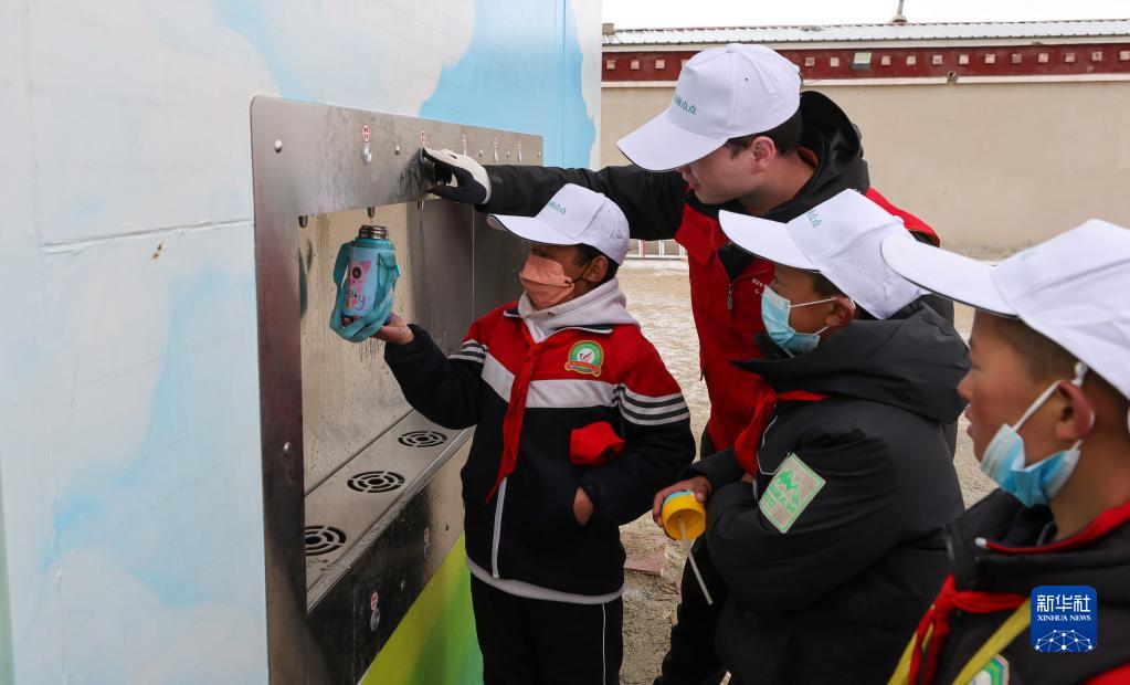 3月21日,那曲市色尼區香茂鄉(xiang) 小學的同學們(men) 在新啟用的淨水站打水。新華社記者 薑帆 攝