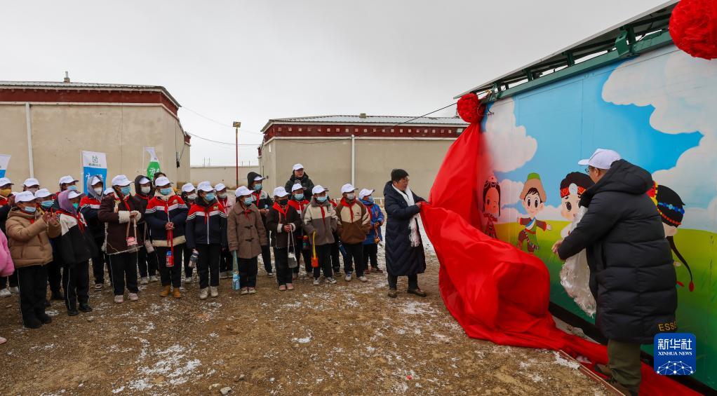 3月21日,西藏慈善總會(hui) 和捐贈單位的代表為(wei) 淨水站揭幕。新華社記者 薑帆 攝