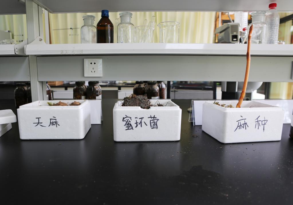 這是天麻種植實驗室內(nei) 培養(yang) 的菌類及麻種(3月24日攝)。新華社記者邵澤東(dong) 攝