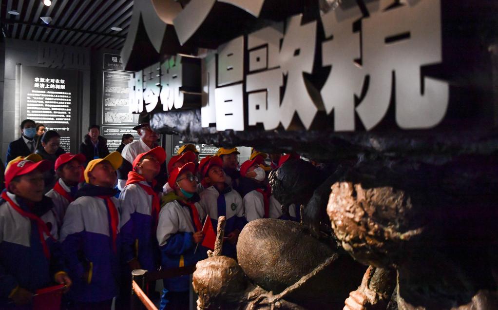 拉薩市堆龍德慶區乃瓊中心小學的學生在參觀西藏百萬(wan) 農(nong) 奴解放紀念館(3月28日攝)。新華社記者晉美多吉 攝