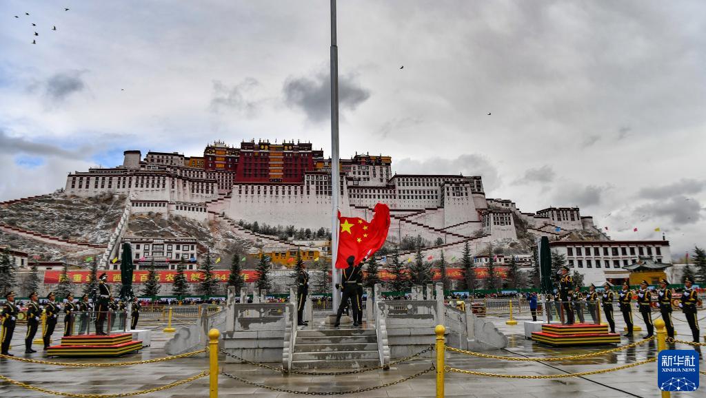 3月28日,拉薩布達拉宮廣場舉(ju) 行升旗儀(yi) 式。新華社記者 晉美多吉 攝