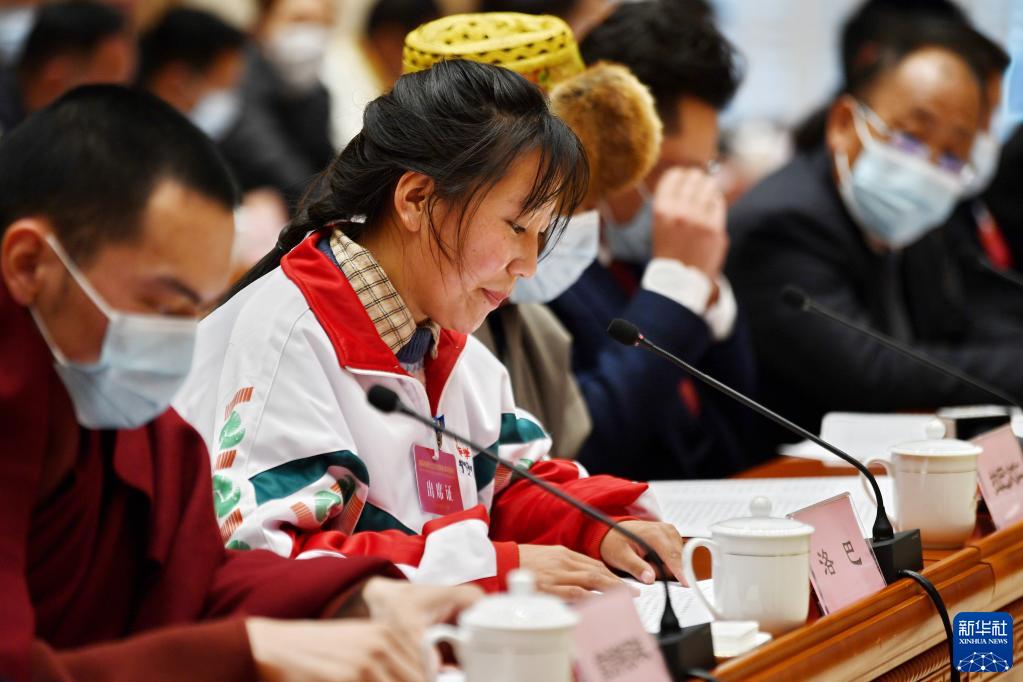 3月28日,拉薩中學高二學生洛巴(左二)參加慶祝西藏百萬(wan) 農(nong) 奴解放64周年座談會(hui) 時發言。新華社記者 張汝鋒 攝
