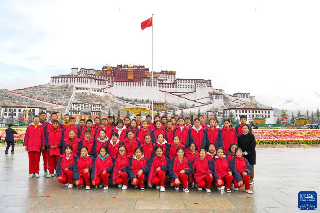 3月28日,在拉薩布達拉宮,參加升旗儀(yi) 式的師生在廣場合影留念。新華社記者 張汝鋒 攝