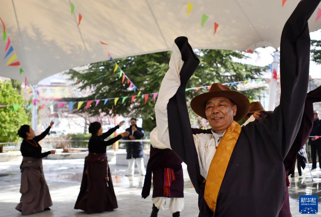 3月28日,拉薩西郊安居苑藏族群眾(zhong) 慶祝西藏百萬(wan) 農(nong) 奴解放64周年。新華社發 (覺果 攝)