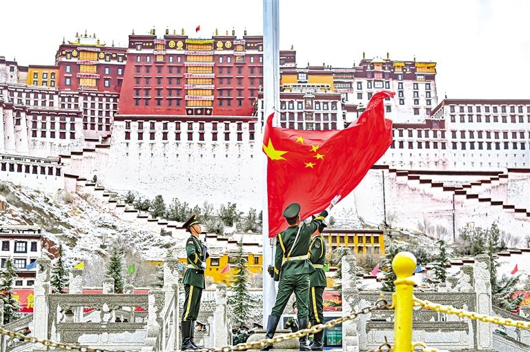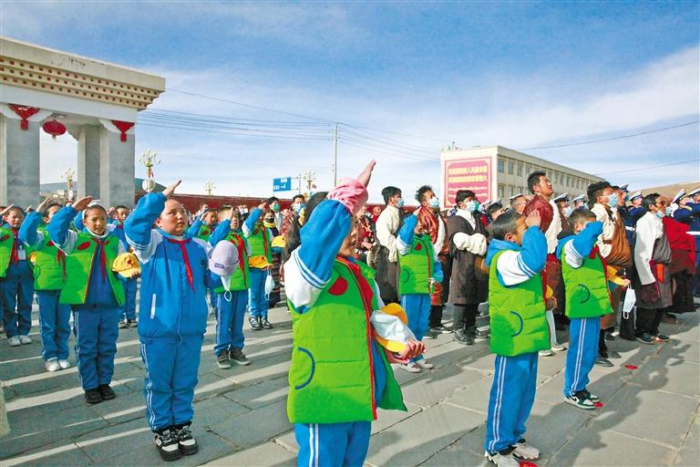 28日,西藏大學、拉薩市教育局組織學生開展“升國旗、唱國歌”活動,並觀看《複興(xing) 之路》和《人格的力量——中國共產(chan) 黨(dang) 人的家國情懷》兩(liang) 個(ge) 直播課堂,革命先烈為(wei) 實現國家解放和民族複興(xing) 前仆後繼、視死如歸的英雄事跡深深打動了每一名學生。西藏大學學生向秋雨說:“我們(men) 要以史為(wei) 鑒,開創未來,紮實學好專(zhuan) 業(ye) 知識,維護祖國統一,鑄牢中華民族共同體(ti) 意識,讓青春之花在祖國最需要的地方絢麗(li) 綻放。”