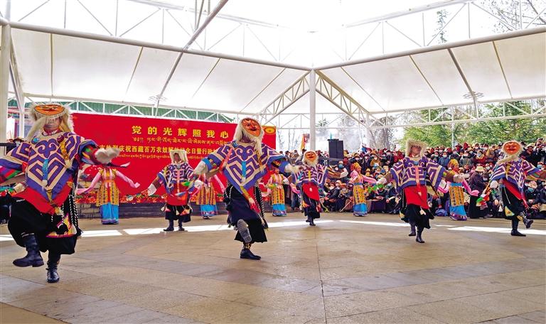 連日來,拉薩市城關(guan) 區、堆龍德慶區,山南市瓊結縣、那曲市班戈縣分別舉(ju) 行紀念西藏百萬(wan) 農(nong) 奴解放64周年文藝表演。優(you) 美的歌聲、熱情的舞步,不時贏得在場觀眾(zhong) 的陣陣喝彩。看完演出,群眾(zhong) 益西旦增激動地說:“64年來,西藏發生了翻天覆地的變化,我們(men) 的生活越來越好,大家從(cong) 內(nei) 心深處感謝黨(dang) 和國家。”