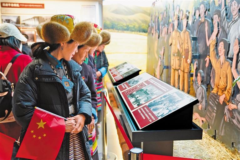 克鬆社區群眾(zhong) 拉巴普赤在參觀時說:“以前我經常來陳列館參觀,這次重新布展後,陳列的內(nei) 容更豐(feng) 富了、科技感更強了、場景也更多樣了,新舊西藏對比非常強烈,很多新的圖片和實物都讓我很受觸動。黨(dang) 帶領西藏各族人民取得了翻天覆地的變化,我們(men) 要倍加珍惜,堅定信念跟黨(dang) 走。”