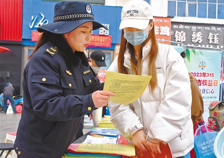 圖為(wei) 今年“3·15”期間,山南市監局工作人員向市民宣講消費者權益保護知識。劉楓 攝