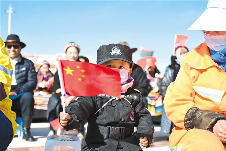 3月28日上午,日喀則市隆重舉(ju) 行“升國旗、唱國歌”儀(yi) 式,來自各行各業(ye) 千餘(yu) 人齊聚日喀則市4號公園,伴隨著《義(yi) 勇軍(jun) 進行曲》響起,在場的各族幹部群眾(zhong) 齊聲歌唱:“起來,不願做奴隸的人們(men) ,把我們(men) 的血肉築成我們(men) 新的長城……”在雄壯的國歌聲中,鮮豔的五星紅旗冉冉升起,在藍天白雲(yun) 下高高飄揚。