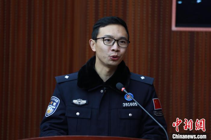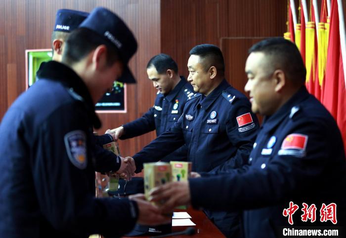 3月31日,邊檢站領導通過授章考核的移民管理警察授章。 肖富貴 攝