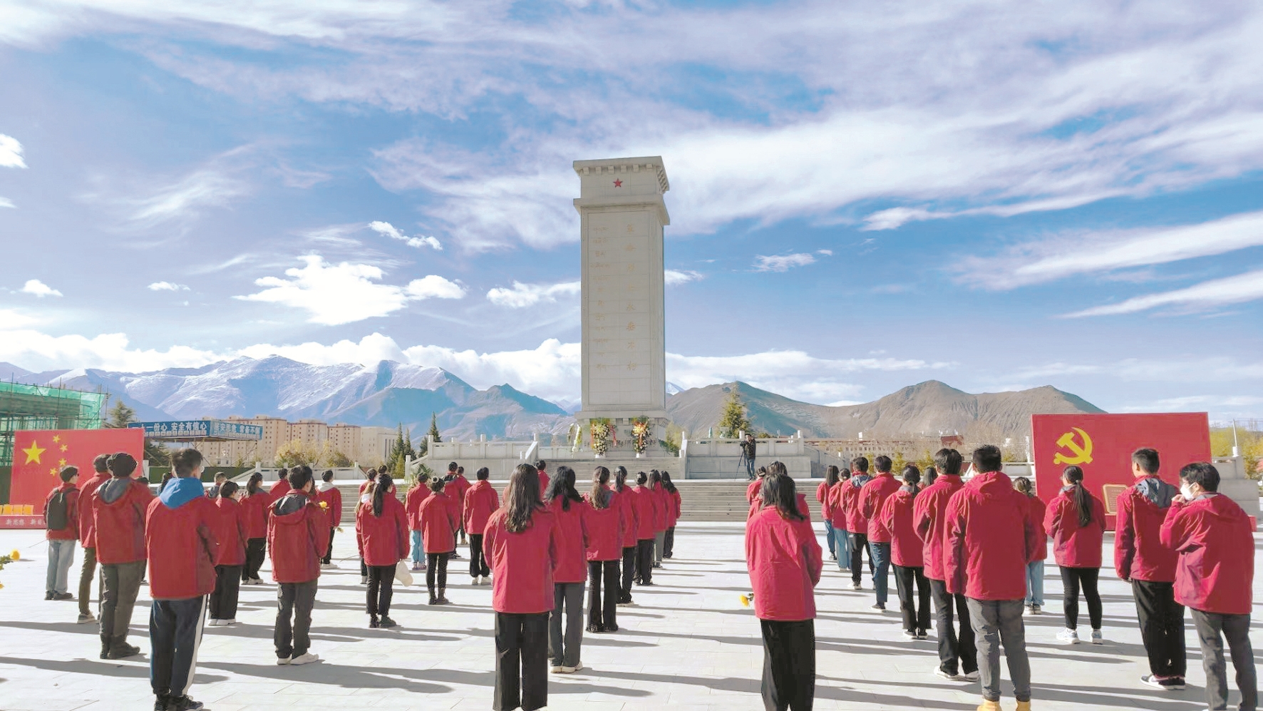 鮮花寄哀思,傳(chuan) 承慰英魂。活動現場,90餘(yu) 名“西部計劃”西藏專(zhuan) 項誌願者身著紅色誌願服,手持黃色菊花,向革命先烈集體(ti) 默哀,並瞻仰革命烈士紀念碑向革命先烈敬獻花籃,表達對革命先烈的無限崇敬之情和深情哀思。