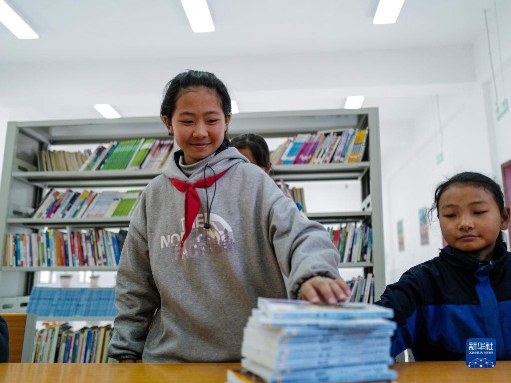 3月31日,下察隅鎮中心小學的學生正在把書(shu) 放回書(shu) 架。新華社記者 格桑朗傑 攝