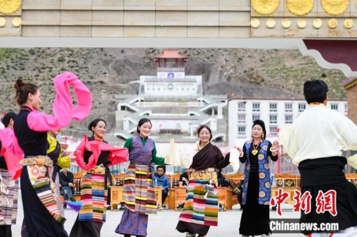 西藏洛隆縣易地搬遷安置點阿托卡小康示範新村,村民載歌載舞。何蓬磊 攝