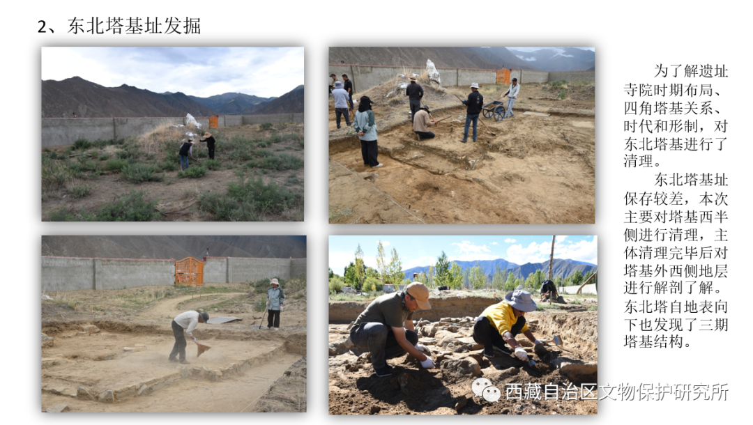 本年度基本厘清了西南、東(dong) 北兩(liang) 座佛塔的始建、維修和複建等分期關(guan) 係,確定了西南塔早期塔基為(wei) 溫江多遺址早期建築遺址,大量使用琉璃質磚、瓦等建築材料為(wei) 其重要特點。遺址西區探方內(nei) 發現的牆址、房址,以及五峰山北麓調查發現的修行洞、居址等重要遺跡,為(wei) 了解溫江多遺址整體(ti) 布局、不同時期的寺院結構提供了重要線索。