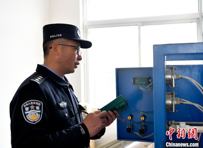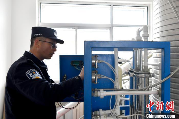 民警李加潘正在檢修保養(yang) 自來水淨化設備。 李林 攝