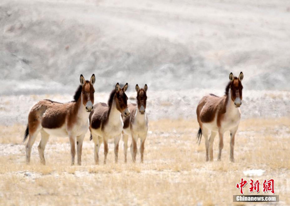 4月10日,西藏阿裏地區劄達縣拍攝到的藏野驢。