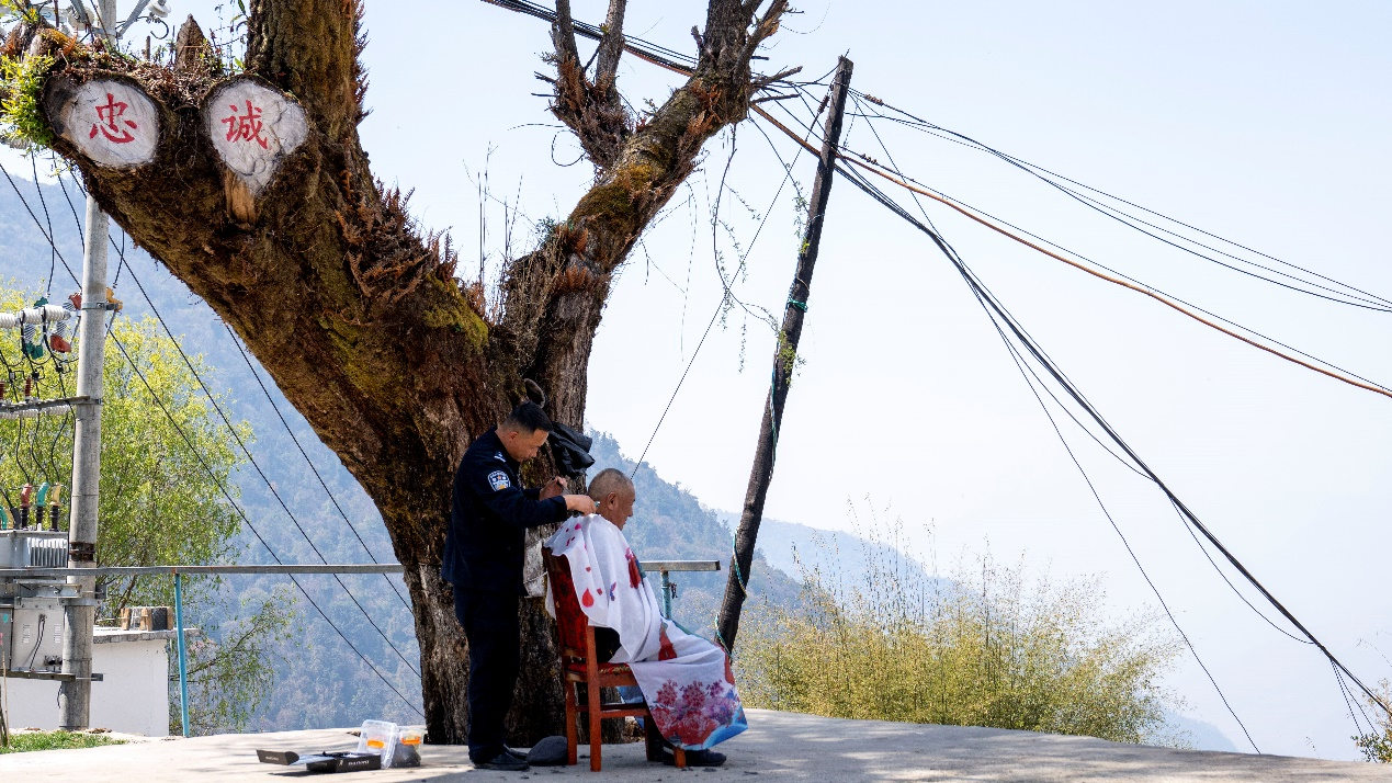 轄區村民和派出所民警關(guan) 係很要好,民警日常走訪群眾(zhong) 時,經常會(hui) 為(wei) 群眾(zhong) 送去罐頭、蔬菜等生活物資。就在記者采訪當天,轄區村民次仁堅參來找民警幫忙理發,“咱們(men) 警民是一家嘛,我對咱們(men) 民警的理發技術很放心!”次仁堅參笑著說。