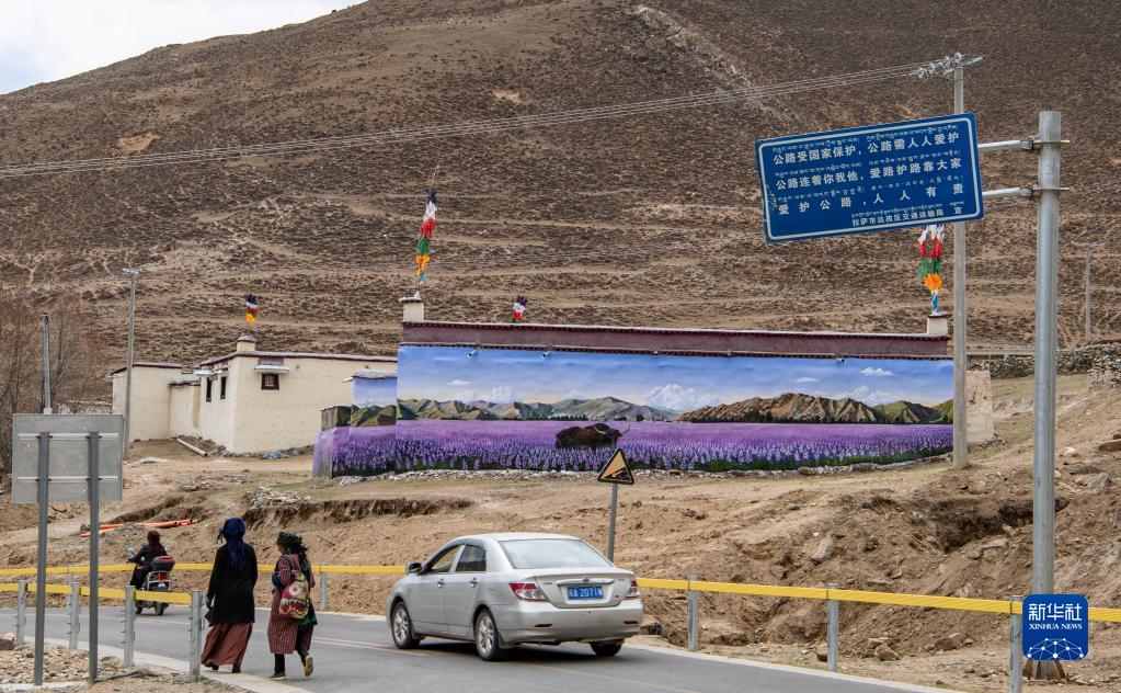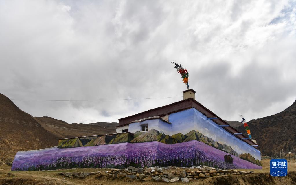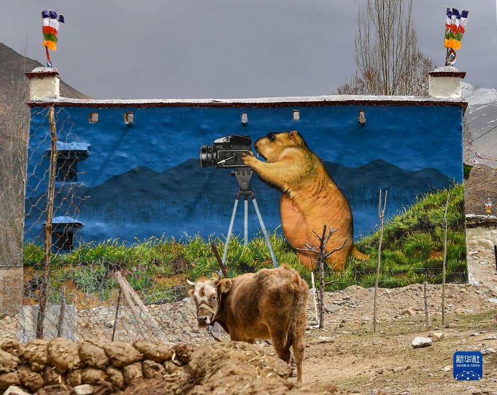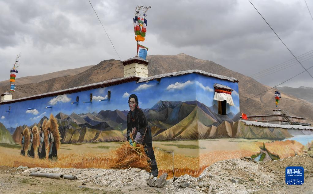 這是4月10日在拉薩市達孜區章多鄉(xiang) 恰村拍攝的牆畫。新華社記者 晉美多吉 攝
