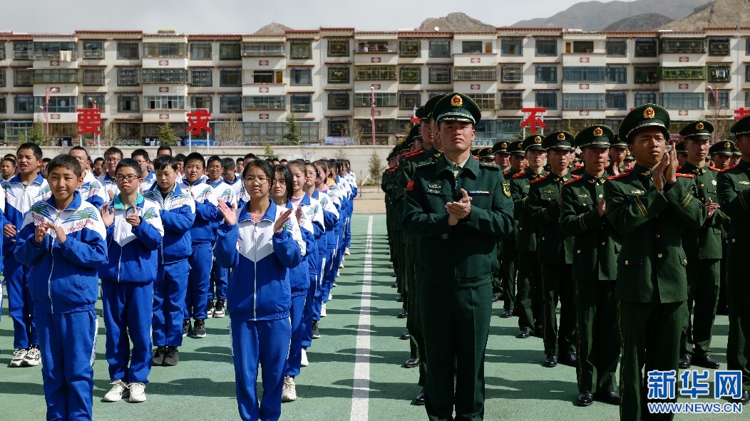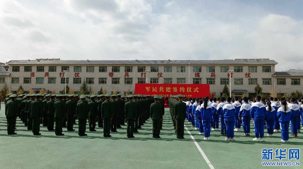 14日上午,武警西藏總隊某部與(yu) 拉薩市第八中學在拉薩舉(ju) 行軍(jun) 民聯誼共育簽約儀(yi) 式,來自武警總隊某部的官兵和拉薩市第八中學的師生約400人參加了簽約儀(yi) 式。