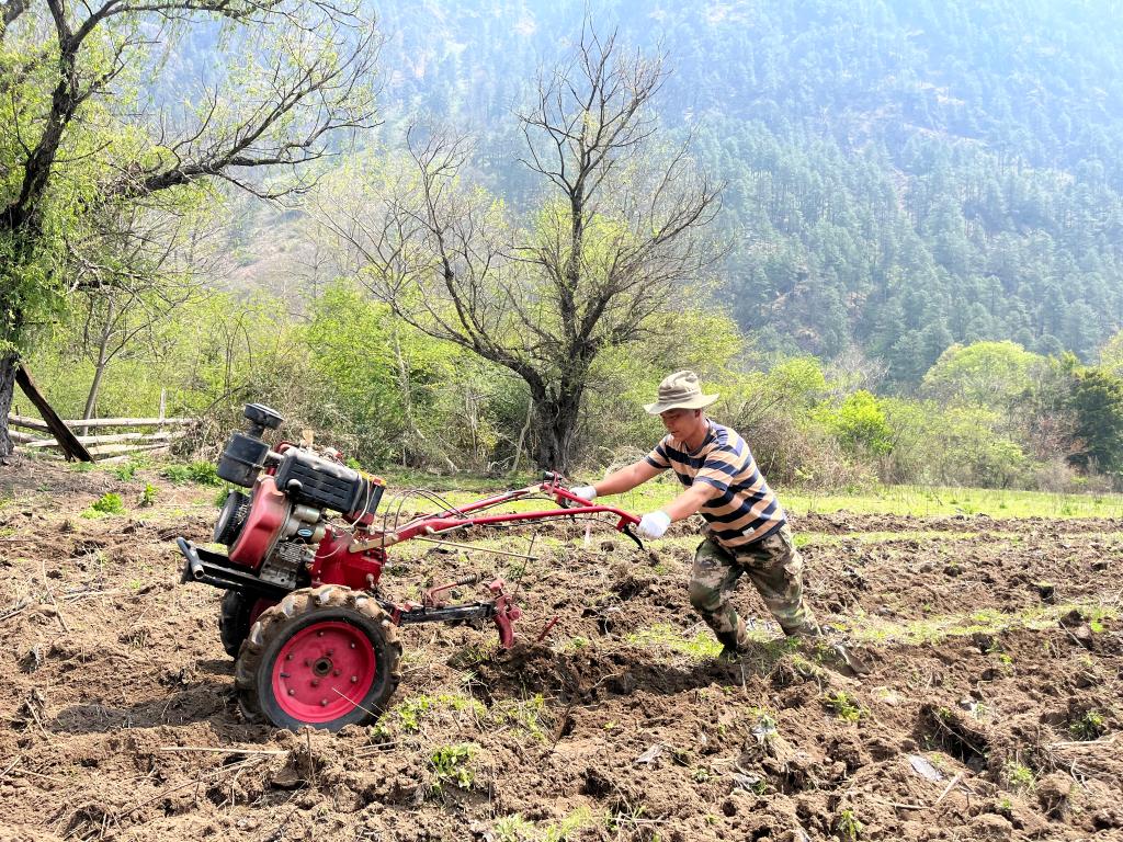 44歲的村民夏多這幾天一刻不得閑,每天一大早,便戴好草帽,穿上膠鞋直奔地裏。前些日子剛把水稻田鬆土澆水完後,緊接著他又一頭紮進玉米地,推著犁地機將田地犁出一道道深深的壟溝。“今年我還要幫其他人耕地,13畝(mu) 多的地得抓緊收拾好,過幾天就要種玉米了。”