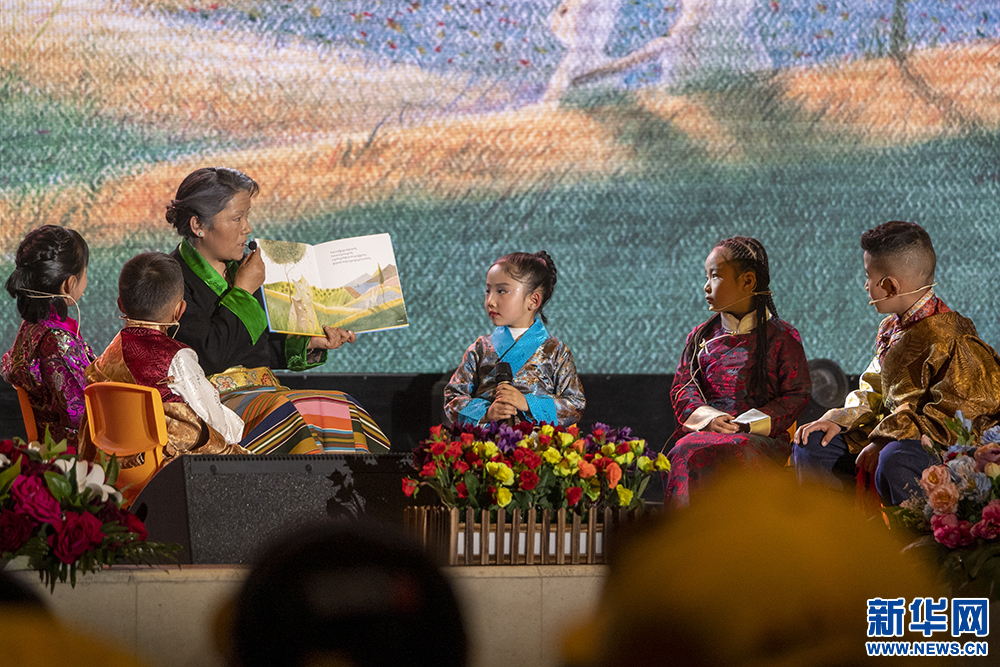 4月23日,諾諾童書(shu) 館館員在講述繪本故事。新華網 旦增努布 攝